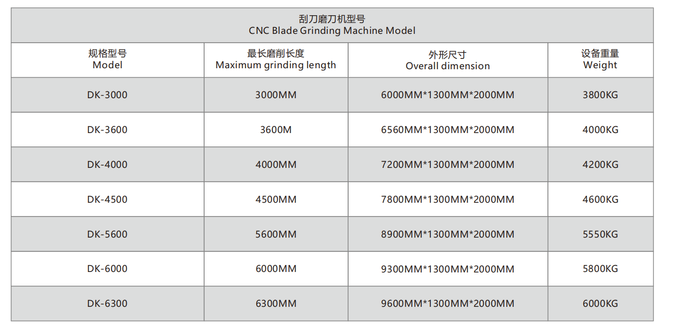 Our company develops and produces fully automatic and speed adjustable blade grinder with frequency converter and plc programming control system. It has an independent computer operation desk, high degree of automation, one of the most advanced CNC blade grinding machines in China. The equipment adopts high-quality carbon structure and processed gantry structure body; grinding head transmission mode is rolling linear guided transmission; cooling water is sprayed from the middle of the grinding wheel, which makes the cooling effect better; the grinding head movement and the speed of the grinding wheel are controlled by imported frequency converter, and the speed is adjustable at will within the specified range.